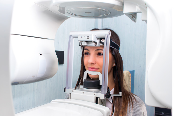 Imagerie en trois dimensions, utilisée pour la planification des implants et les diagnostics complexes.